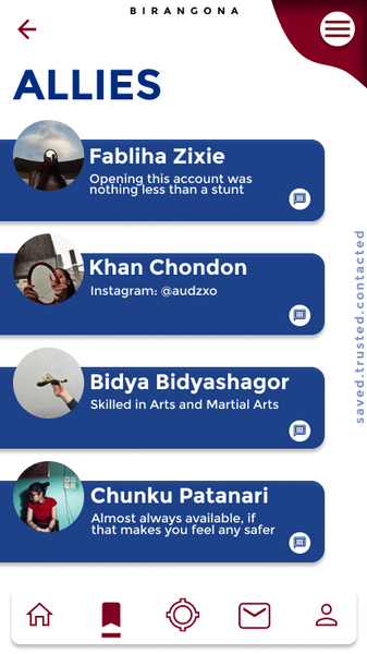 With safety and consent at the heart of this project, it was imperative that I ensure the privacy of the individuals is respected and reminded. Birangona’s need to access the current location and record audio is a severe gamble that is risky if it is not well executed.